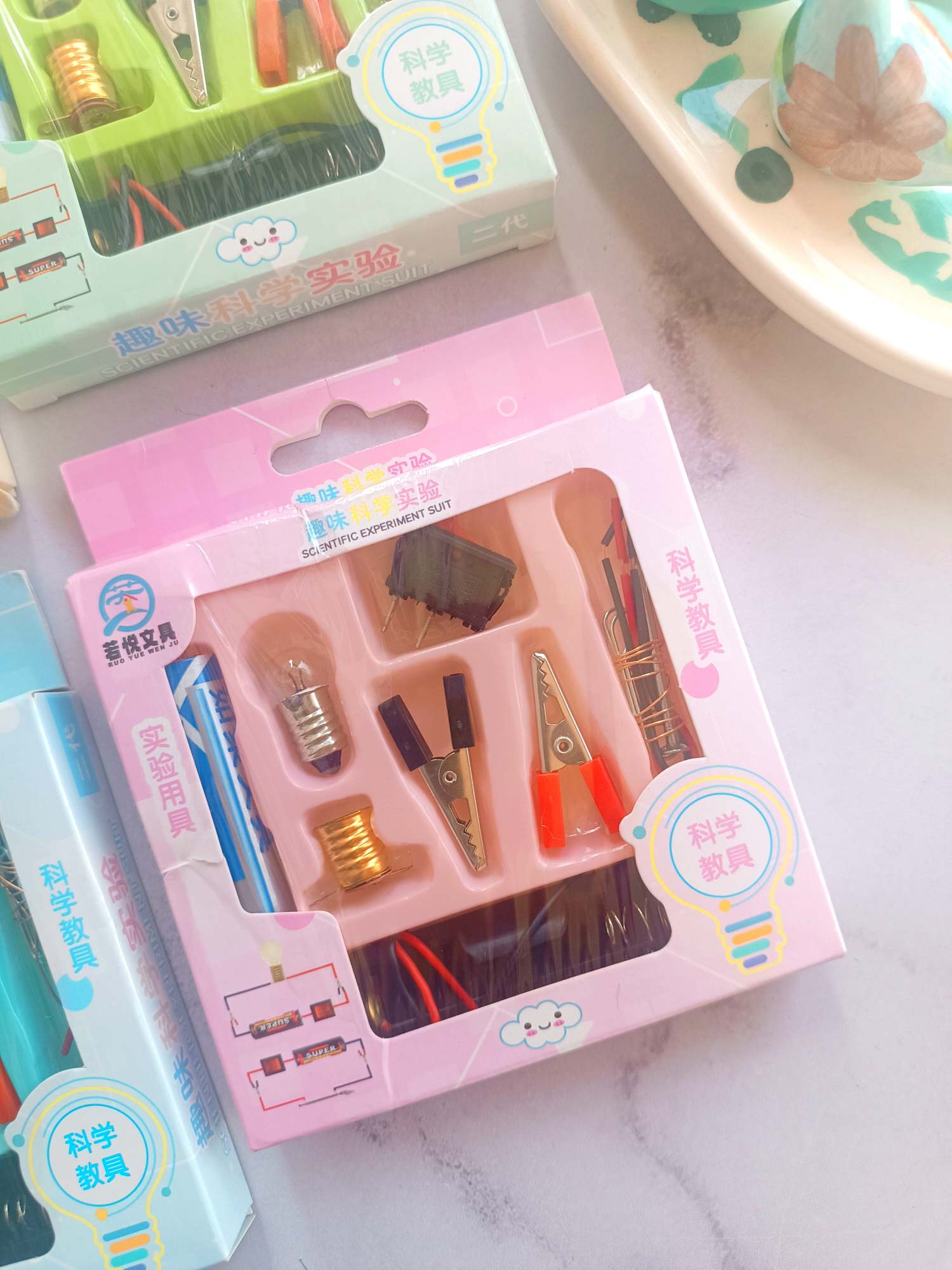 این ست برای آزمایش های درس علوم پایه دبستان و متوسطه استفاده میشود . شامل : باتری ، سرپیچ و لامپ ، جا باتری ، سیم ، گیره ، کلید قطع و وصل میباشد .