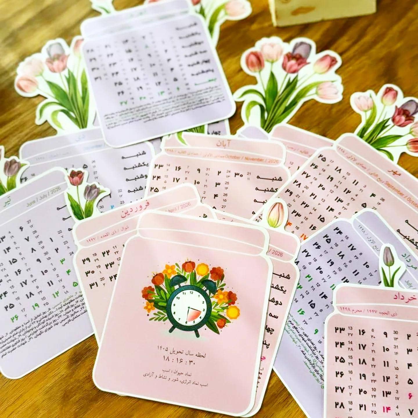 تقویم رومیزی گل ۱۴۰۵ 🌺🌺 از پر طرفدارترین و خاص تقویم هایی که هر سال شارژ میشه 🤩 دارای پایه چوبی . هر ماه روی یک طرح گل میباشد . جنس برگه ها طلقی و قابل تمیز شدن میباشد . تمام مناسبت ها نوشته شده.