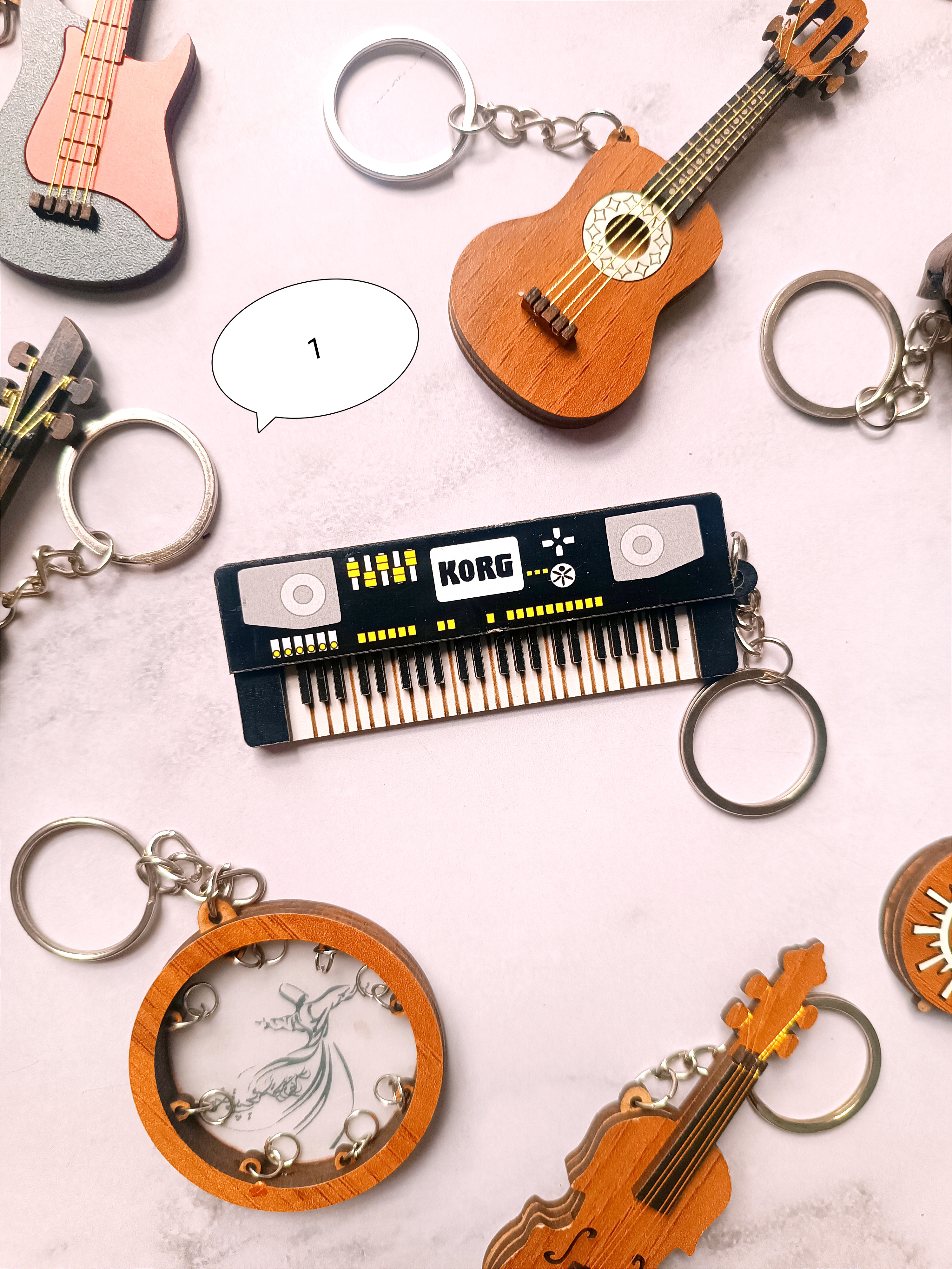 جاکلیدی و آویز چوبی آلات موسیقی