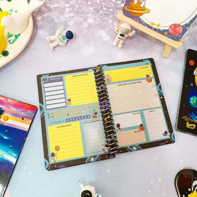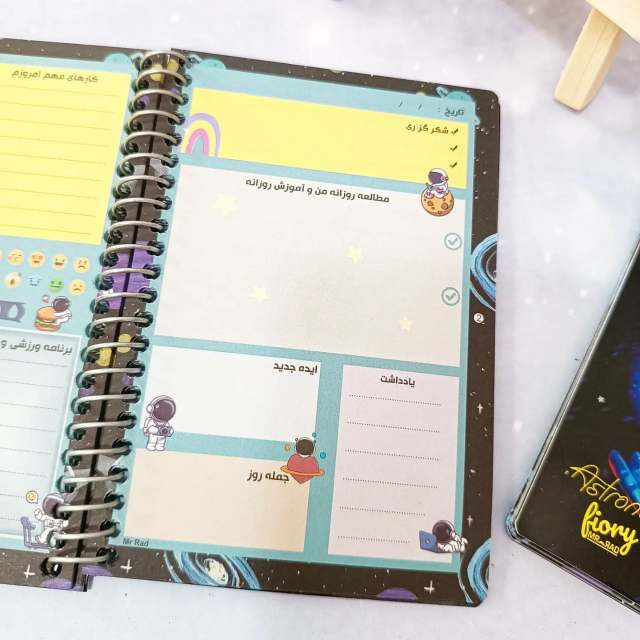 دارای قسمت های مختلف شکرگزاری.ایموجی حالات مختلف روز.برنامه غذایی و ورزش .کارهای مهم